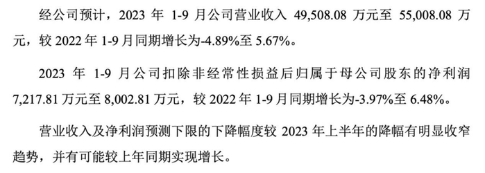 中研股份招股书称,预计2023年前三季度实现净利润4300万元至5200万元,同比增长8.31%至30.98%。