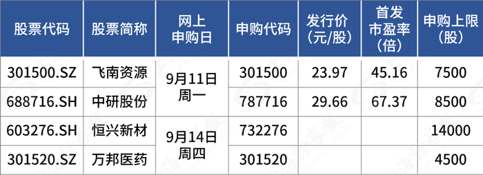 据目前安排,若无变化,本周(9月11日至15日)有4只新股可申购,包括科创板1只、创业板2只和沪市主板1只。