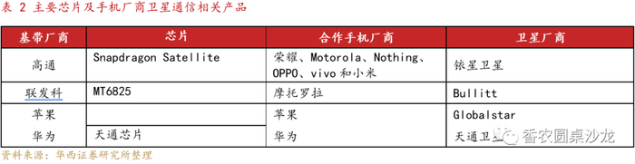 3)终端侧增加相关卫星通信芯片:在手机中单独增加相应的卫星通信芯片,通过特定卫星频段实现短信甚至语音、数据通信功能。