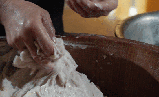 仅有基本功是不够的,每一门手艺总有讲究的技巧,与关键环节。拍打鱼糜,讲究姿势,讲究力道,更讲究温度。