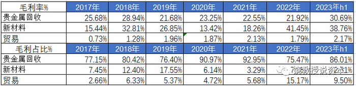 2022年报中,贵金属回收的量也是大幅下降,销售量下降40%,则应该是贵金属回收业务下滑的关键原因,价格下降可能也有影响。