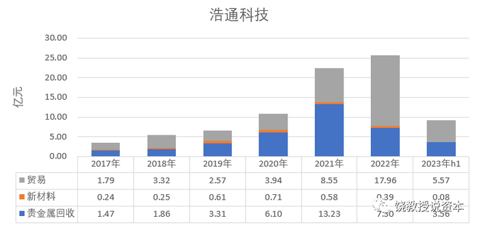 最后,我的印象是这样,浩通科技贵金属回收业务是一个承担贵金价格风险波动的业务,方式是通过看准时机购买贵金属库存,一方面满足客户交付需求,以承担价格波动的方式(优势)承揽业务。另一方面,前几年确实看得准,也挣了不少钱,但是未来能不能继续看得准,2023年上半年的存货减值告诉我们,这个恐怕不具有持续性,看不看得准,这是个市场判断,不容易形成持续盈利的业务核心竞争力。