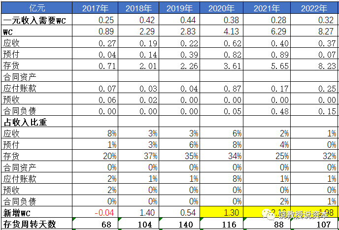 看起来一元收入需要WC,似乎并没有特别异常。不过留意到,从2018年开始,每年都需要投入增量WC,说明,生意做得越大,浩通科技商业模式是需要增量营运资金投入。