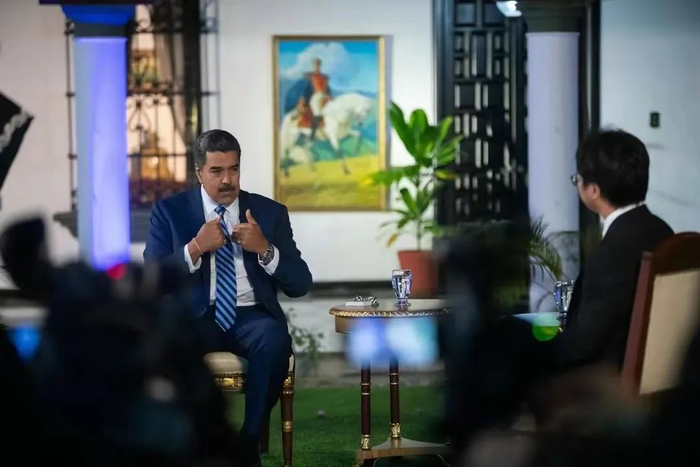 ▲9月5日,即将访华的委内瑞拉总统马杜罗接受新华社记者专访。在前一日委内瑞拉电视台(VTV)发布的节目视频中,马杜罗说,“我有一部华为手机,用起来非常棒。……这款手机非常好,外国佬们窃听不了。”