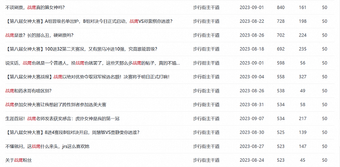 今年在战鹰身上,也并非没有过这些反对的声音。在虎扑步行街,关于本届女神大赛被回复得最多的帖子,几乎都是反对战鹰或对战鹰投票如此之高感到不解的。