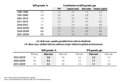 由于经济增速低于潜在水平,目前经济中已经存在产出缺口。如果经济增速持续低于5%的潜在增长率,经济将会面临更大的下行压力。到那时,需要更多的资源来支持政策逆周期调控。相反,如果能及时调整政策,提振整体需求到正常水平,并将经济信心恢复到疫情前的可比水平,我们能更好保障中长期潜在增长维持稳定。否则,持续的经济增速下行将给中国中长期的发展带来风险。
