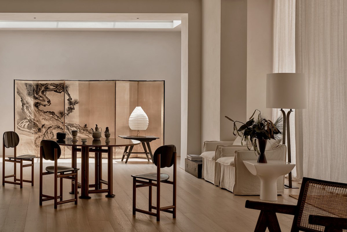 另外,艺术化的格调、个性化的设计,也是曼舍的特色,以收藏级的中古家具与当代艺术相融合,创造既冲突又和谐的审美碰撞,同样也是这套曼邸最突出的艺术格调与审美趣味。范敏俊提到,如今所见的空间布局正是以屋主人经年的收藏为出发点,让收藏演绎质朴的高级感,东方的古董与西方的现代单品在此融合得恰到好处。