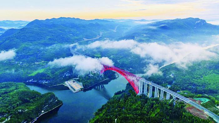 中交一公局第四工程有限公司承建的德余高速公路乌江特大桥,全长1834米,主桥跨径504米,是世界最大跨径的上承式钢管混凝土拱桥。