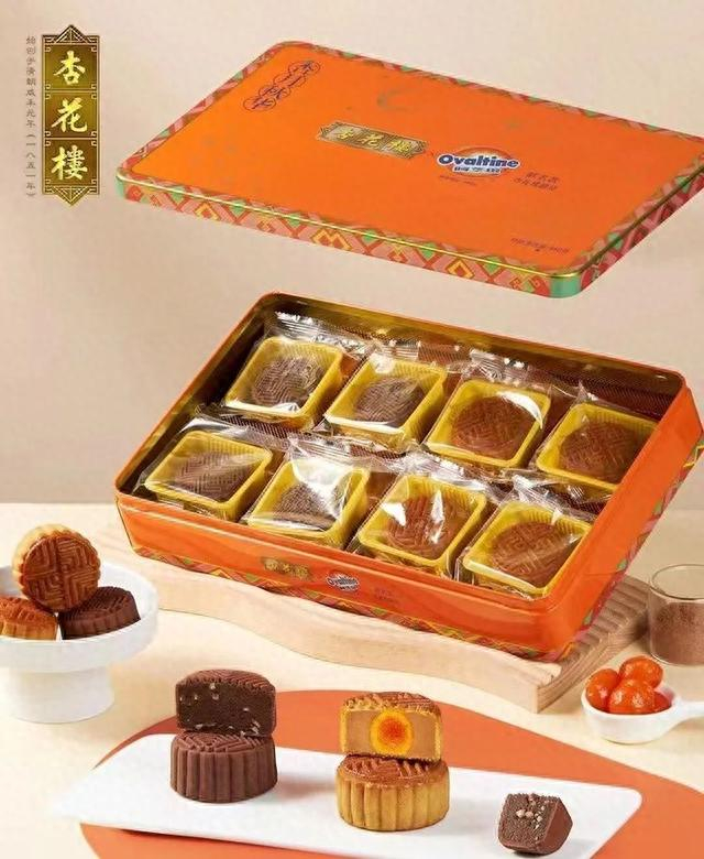 杏花楼今年推出34款盒装月饼,7款散装月饼。有5款为今年新推出的创新口味和馅料联名合作款。其中,阿华田联名款有两种口味:可可巴旦木和蛋黄麦芽。