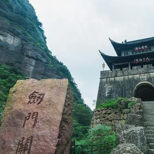 距离翠云廊不远就是被李白感叹为“一夫当关,万夫莫开”的剑门关了。剑门关位于龙门山脉的支脉剑门山之间,剑门山全长70多公里,最高峰海拔约1200米。山脉其中有一处出现断裂,由72座像剑一般矗立的山峰组成。两山之间出现宽约20米的豁口,其状如门,故曰剑门。剑门关的前身是剑阁,诸葛亮为相时,在此“凿石架空,为飞梁阁道,以通行旅”,又于豁口处砌石为门,置阁尉,设戍守,是为剑阁设关之始。剑阁所处的隘口北高南低,北坡十分陡峭,南坡则相对平缓,因此守城方据于关上可居高临下阻击敌人,而攻城者却需要攀登峭壁再攻城,且没有展开兵力的空间,难度可想而知。