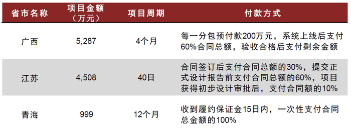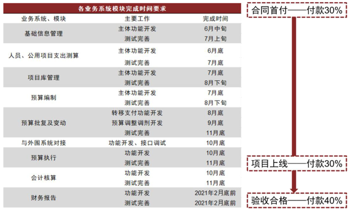 资料来源:山东省2017年“财政核心业务一体化系统开发部署实施”合同,中金公司研究部
