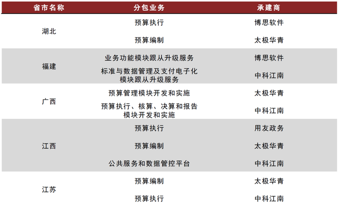 部分省份分模块建设预算管理一体化系统,打造合作生态