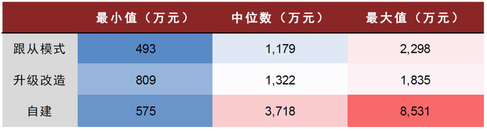 “三种模式”:自建模式成本较高,跟从模式、升级改造建设周期较短