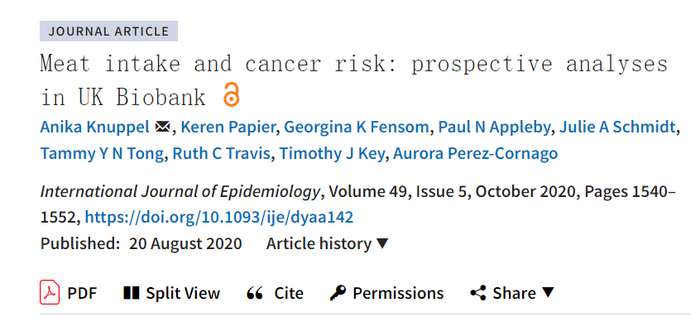 本文综合自:①Meat intake and cancer risk: prospective analyses in UK Biobank | International Journal of Epidemiology | Oxford Academic (oup.com)https://academic.oup.com/ije/article/49/5/1540/5894731
