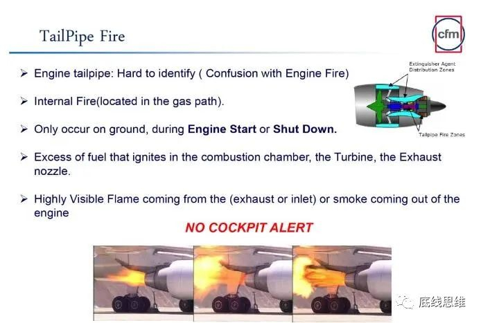 CFM56发动机的手册中特别说明尾喷管内部着火是不会触发火警警报的