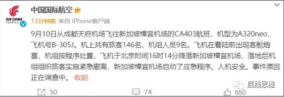 必须得说,在这次发动机起火事件中,国航机组与新加坡机场方面表现得颇为专业。
