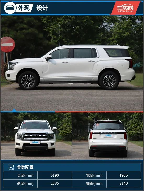 外观细节方面,试驾车辆两侧多边形头灯紧挨着格栅两端,并采用了类似坦克500的样式设计,内部为LED光源。车侧配有迎宾踏板,但实测下来后发现这个踏板比较鸡肋,对于身高较高的驾乘者来说,上下车时反而跨过这个踏板会更方便,但跨过时又会容易弄脏裤腿。轮圈样式上,新车采用了双六辐的设计,看起来有一定的豪华感。轮胎方面,试驾车辆采用了朝阳轮胎,前/后轮胎规格为245/60 R18。虽然尺寸不算小,但与新哈弗H5庞大车身相搭配,视觉上有一些违和感。