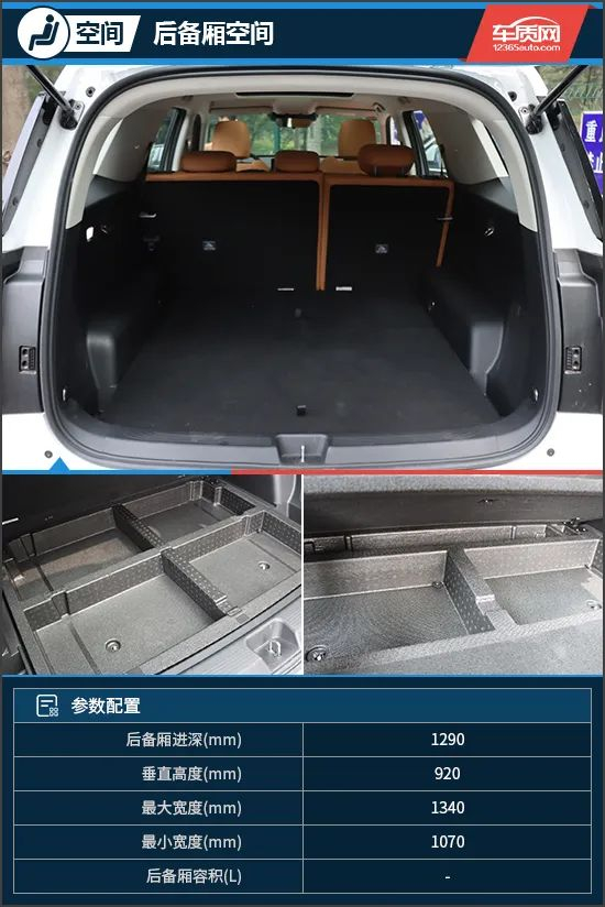 后备厢空间方面,试驾车辆为大五座设计,后排座椅还未放倒的情况下就已经有着不错的储物能力了。而在比例放倒后,后备厢空间的容积则会更上一层楼。此外,后备厢拥有前/后两块地板,并均可掀起,内部分别有2个和4个容量不错的储物格。