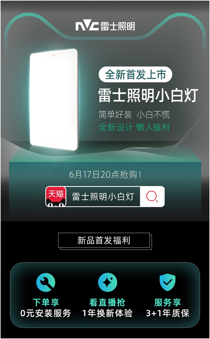 在此背景下,人们对光的需求也在升级。人们从原来关注的单一灯饰产生的光效,现在升级为关注光环境,即灯光的层次感。“无主灯”概念,搭配近年来家装市场火热的全屋定制概念,雷士照明提出了“全屋光环境”的价值主张,不仅提供创新的照明灯饰产品,还提供产品+服务的整体应用一站式解决方案,以满足追求更优生活品质、更高服务效率的用户的需求升级。同时,针对家装的小白用户,雷士照明提出快装式结构的“小白灯”概念,赢得这类人群的心智。真正做到消费者在哪里,品牌就在哪里。