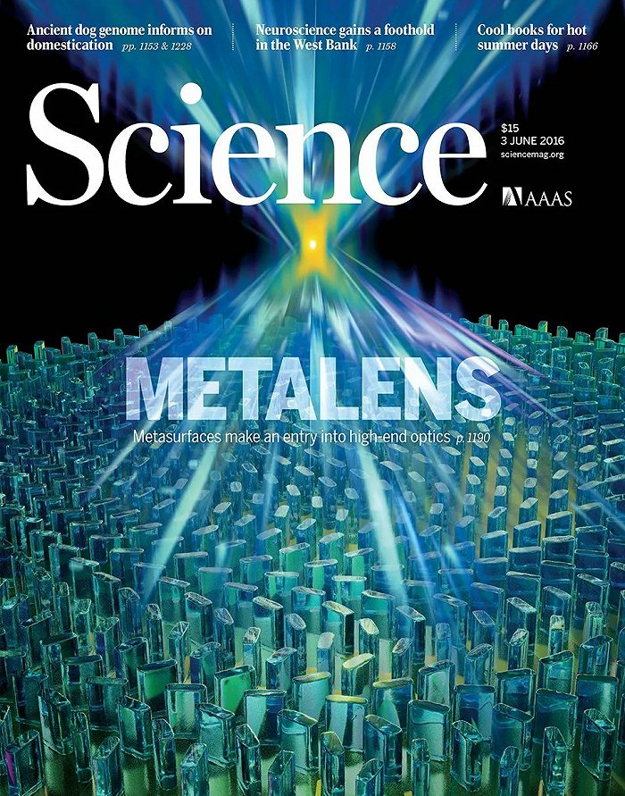 关于平面超透镜的研究从十年前就开始了,哈佛大学Federico Capasso教授团队从2011年起开始引领超透镜的科研发展方向并进行产业化尝试,于2012年发表了基于纳米单元结构的超构表面透镜设计,并于2016年发表了在可见光谱范围内工作的超透镜,还成功登上了《Science》的封面。