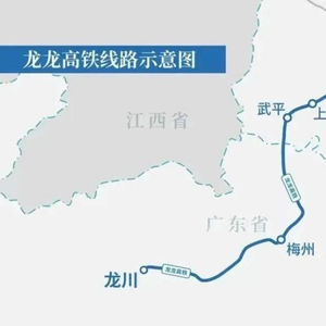 龙龙高铁广东省内梅州至龙川段(又名梅龙高速铁路)是广东首个自行投资建设的时速350公里高铁项目,也是梅州、河源与粤港澳大湾区紧密联系的重大项目。