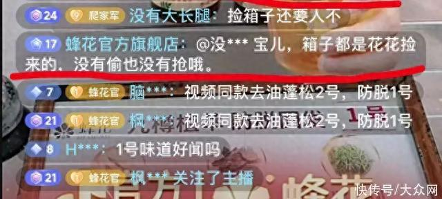 对此,蜂花在直播间回应称“箱子都是花花捡来的,没有偷也没有抢哦。”