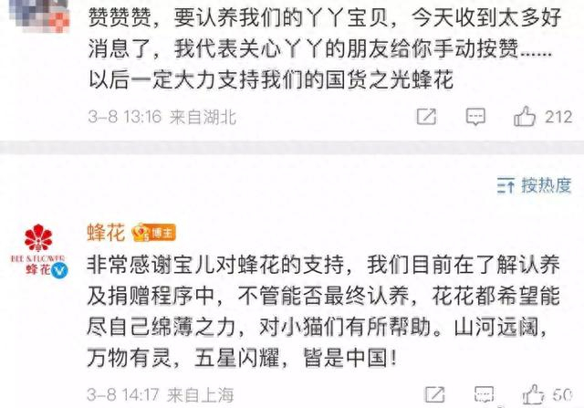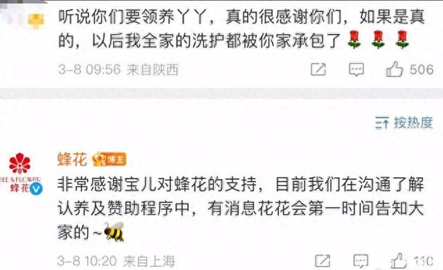 3月8日,有网友在上海华蜂日用品有限公司官方微博@蜂花 评论区咨询:听说你们要领养(大熊猫)丫丫,真的很感谢你们。