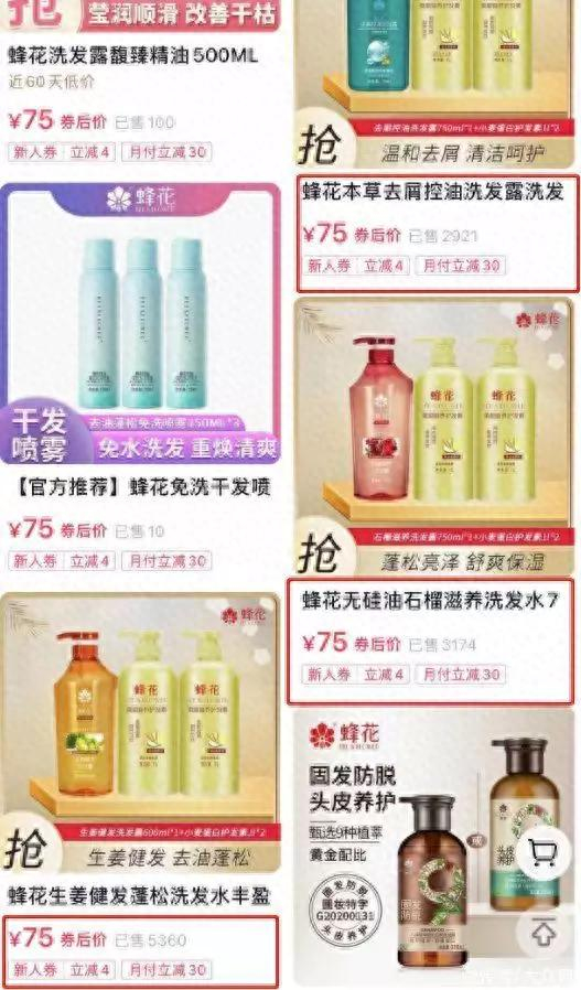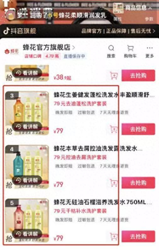 中新经纬12日上午查询其抖音直播间旗舰店发现,这三款洗护套装券后价格均为75元,目前三款销量累计已过万。