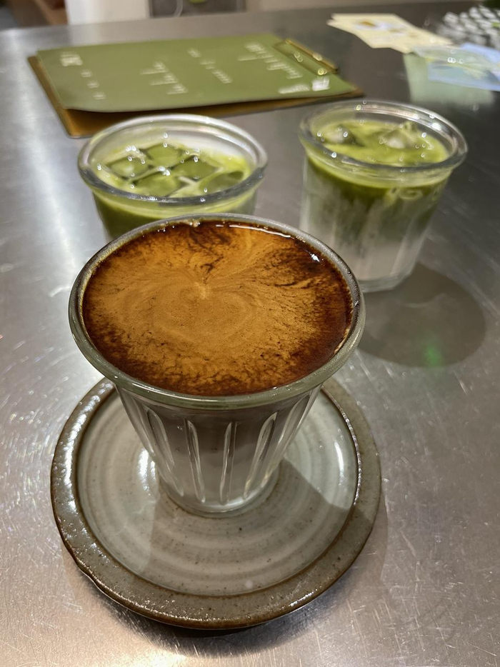 小山家的Dirty是经典不败款,每每喝起来都口感炸裂。自烘焙的咖啡豆给人浓郁的第一口享受,之后浓缩与牛奶的交融则变化多端。