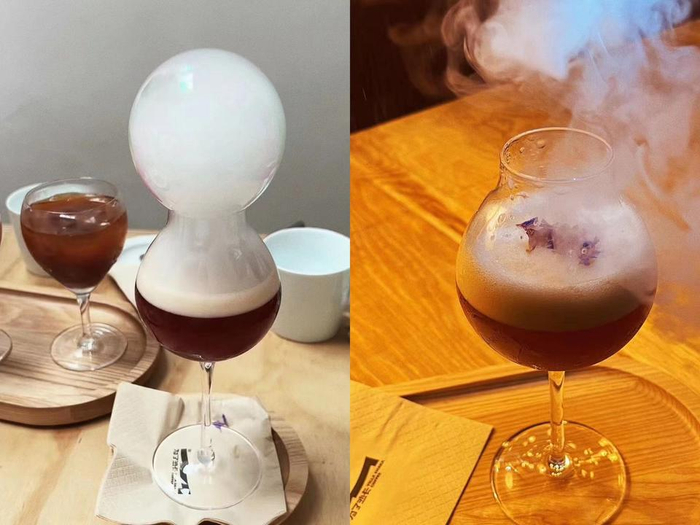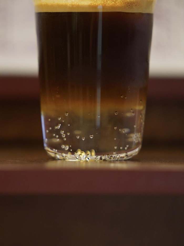 满分气泡西柚汁与双份浓缩,看透明的气泡在杯底慢慢升起,橙红色的液体像沸腾的心情,感受气泡和咖啡液在口腔中舞蹈吧。
