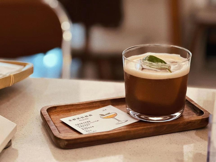用鲜苹果榨成汁,配合12小时的冷萃咖啡,加上低温慢煮的罗勒叶,给人非常清爽的感觉,风味层次也很丰富。