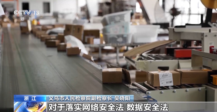 义乌市人民检察院副检察长 吴晓阳:特别是这些中小微的电商云仓企业,对于落实《网络安全法》《数据安全法》《个人信息保护法》等等这些法律法规规定的网络安全、数据安全和个人信息保护相关的这些制度要求没有落实到位,导致发生了用户信息被泄露、窃取的这么一个问题,某种程度是既损害了消费者的合法权益。同时,背后也损害了社会公共利益。