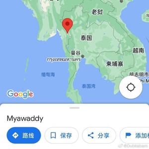 张实进入的园区所在的缅甸妙瓦底位置。 来源:张实的微博