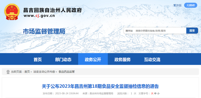 新疆昌吉州市场监督管理局公布2023年第18期食品安全监督抽检信息