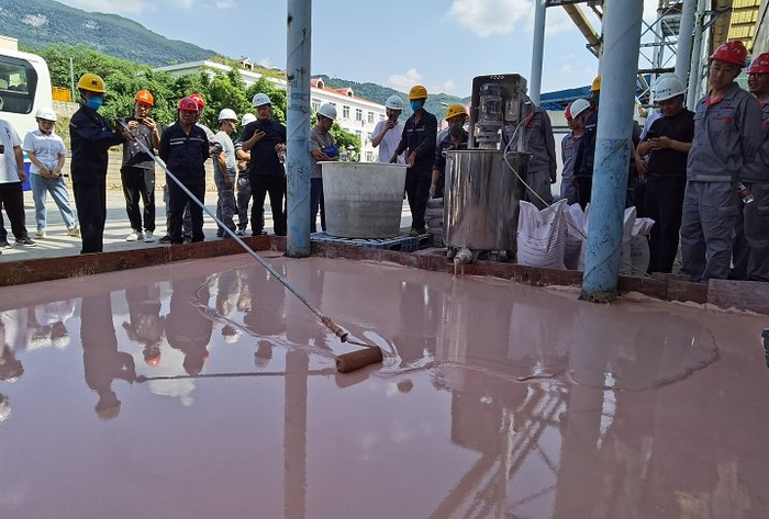 贵州磷化绿色环保产业有限公司磷石膏基自流平砂浆施工演示