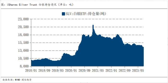 根据WIND统计的数据,截至2023年8月9日,全球最大白银 ETF iShares Silver Trust 的白银持有量为14,044.98 吨,较2023年年初下降约457.5吨。