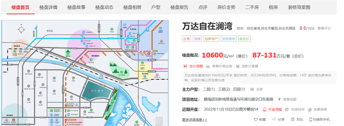 公开资料显示,万达自在澜湾楼盘,位于天津静海团泊新城常海道与环湖北路交口东南侧,由万达投资集团打造,最新参考价格10600元/平方米。
