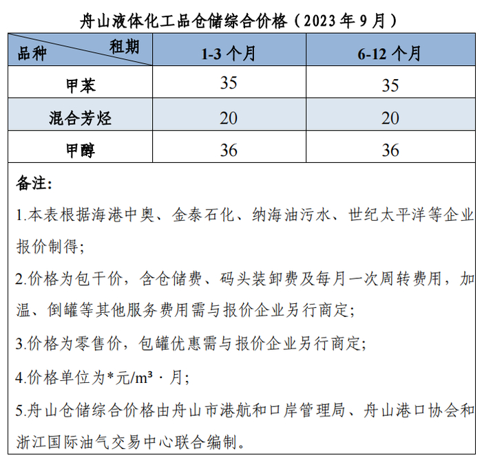 舟山油品仓储综合价格指数