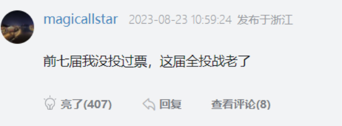 有虎扑网友在评论区留言,说自己“前几届没投过票,这届全投战老”。