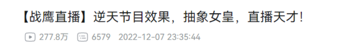 屡次出众的直播效果让战鹰逐渐在网友心目中坐实了“抽象女皇,直播天才”的名号。