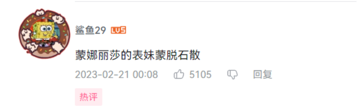 网友神评:这是“蒙娜丽莎的表妹,蒙脱石散”,“达芬奇来了高低也得上个(意即打赏)舰长”。