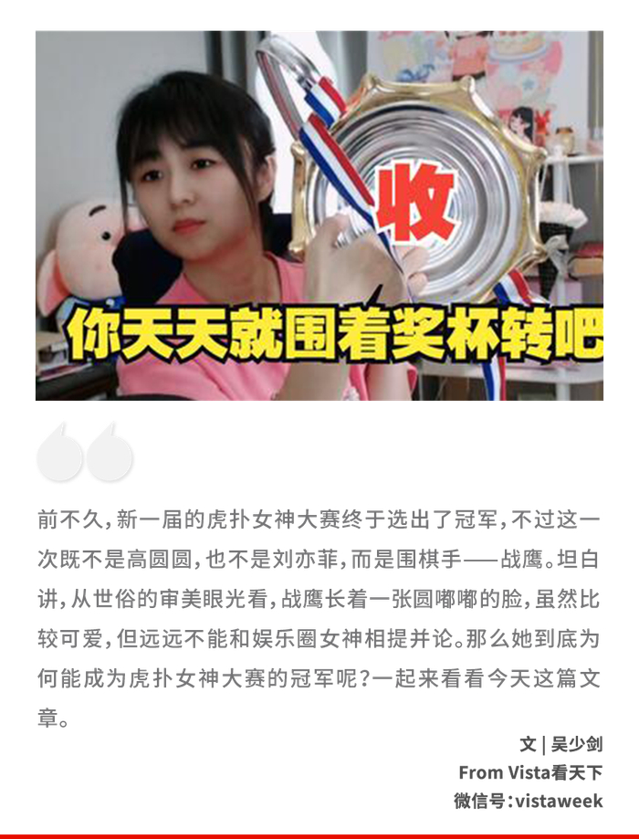 也有人认为,战鹰讨喜的点在于经历了爆红、被黑、抽象文化等一系列大起大落后,她居然还在专注于围棋。