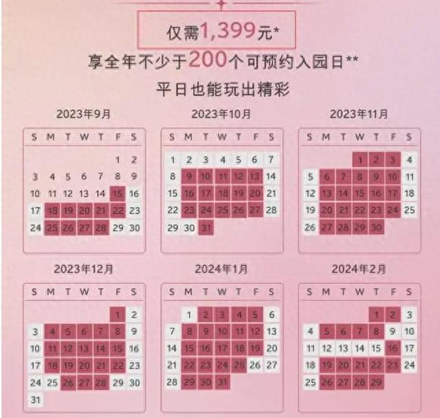 原先人气颇高的入门级年卡——梦幻水晶卡依然处于停售状态,取而代之的入门级年卡是全新的“幻彩珍珠卡”,持该卡种的游客可有全年不少于200个的预约入园日,标准价格为1399元,儿童、老年人、残障人士可享的优惠价为1049元。200个预约入园日基本为工作日。