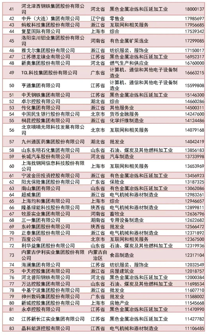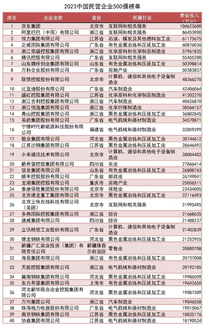 中国民企500强榜单出炉!京东、阿里巴巴、恒力集团居前