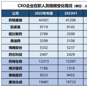 今年医药企业裁员浪潮持续传导,连日来,从各家CXO企业陆续发布的2023年中报信息可以看到,与2022年年报的在职人员情况作对比,头部企业“裁员”压力山大。