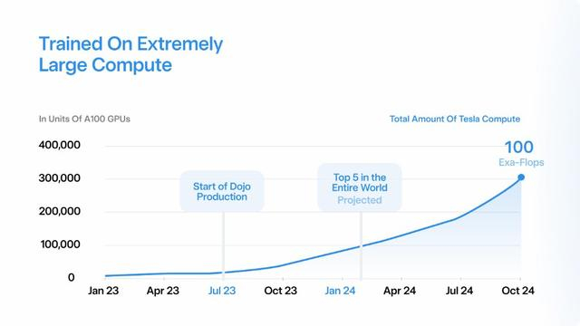 根据特斯拉的规划,其帕洛阿尔托数据中心将建造7台Dojo ExaPOD。到2024年2月,特斯拉算力规模将进入全球前五,10月总规模将达到100 Exa-Flops ,相当于30万块英伟达A100显卡的算力总和。
