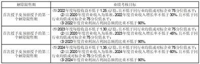 本激励计划授予的限制性股票,在2022-2024年的3个会计年度中,分年度进行业绩考核并解除限售,每个会计年度考核一次,以达到公司业绩考核目标作为激励对象的解除限售条件。