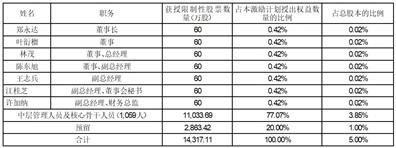 2、上述任何一名激励对象通过全部有效的股权激励计划获授的本公司股票均未超过公司总股本的1%。公司全部有效的激励计划所涉及的标的股票总数累计不超过公司股本总额的10%。