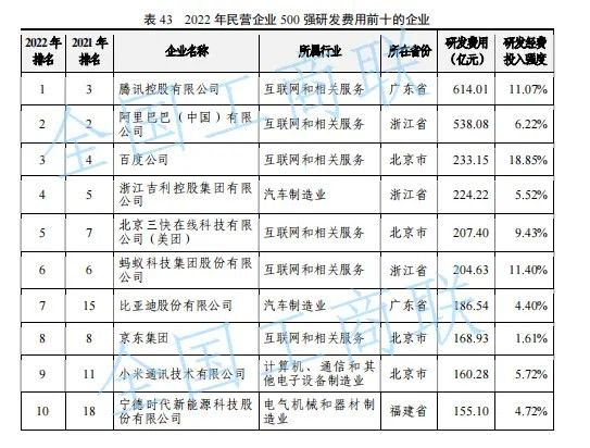 当然,随着科技自主创新的重要性愈发凸显,民企纷纷加码研发投入。