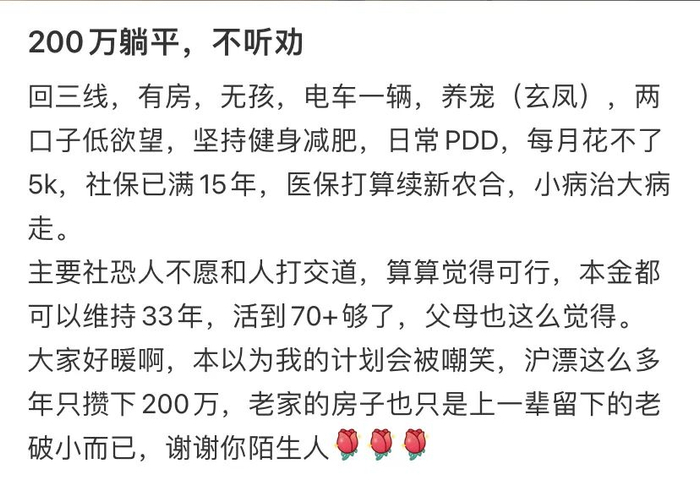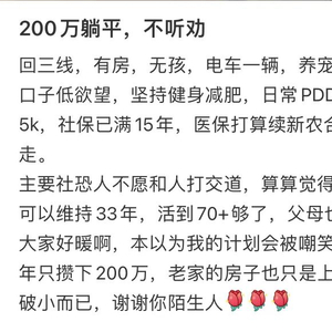 有位博主,攒够200万,打算回三线城市提前退休安心躺平了。